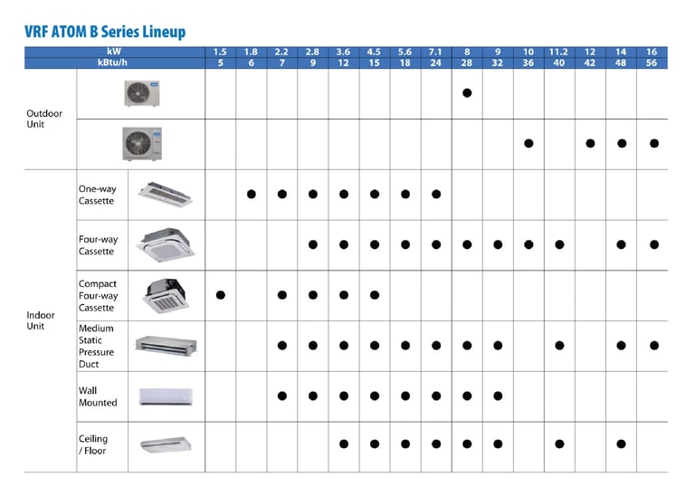 Atom VRF iç ve Dış Ünite Seçenekleri